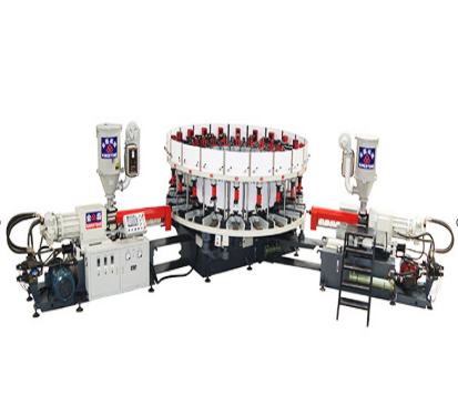 金磊全自動圓盤式雙色連幫鞋類射出成型機特點:
